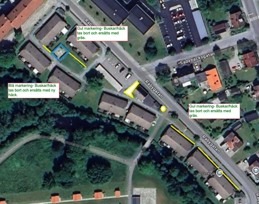 Vi kommer att ersätta gamla häckar med nya häckar och ersätta vissa häckar med gräs. Se kartbilden för mer information.